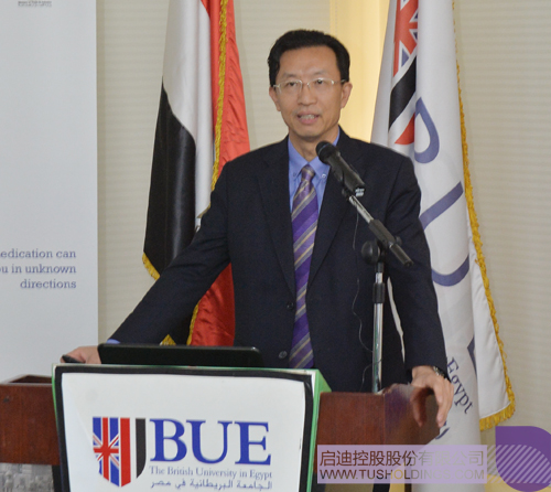 首先,BUE大學(xué)董事會主席Mohamed Farid Khamis先生對啟迪之星(開羅)的最終落地表示祝賀,并在致辭中用兩個“最”來形容大學(xué)科技園的意義以及與啟迪的合作:建設(shè)和運營大學(xué)科技園及孵化器是當下BUE大學(xué)對埃及社會進步和經(jīng)濟發(fā)展能做出的最大貢獻;中國的啟迪控股是BUE建設(shè)運營大學(xué)科技園和孵化器最理想的合作伙伴。Mr. Farid Khamis Khamis表示,在啟迪的支持和幫助下,BUE大學(xué)有信心將大學(xué)科技園建設(shè)運營為埃及乃至北非最成功、最有影響力的科技園。