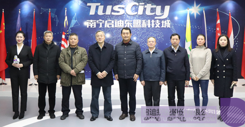 南寧市副市長、五象新區管委會副主任李建文,五象新區管委會副主任農冰、副主任譚玫瑰,南寧市市政府秘書長黃宗成及南寧市、南寧五象新區相關機構負責人一同到訪。中國—東盟科技產業合作委員會秘書長張一丹,廣西啟迪綜合運營管理中心總經理覃樹寧等一同參加。