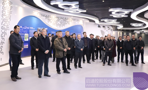 啟迪控股高級副總裁、廣西啟迪董事長李東明(前排右三)介紹啟迪控股在南寧的布局情況