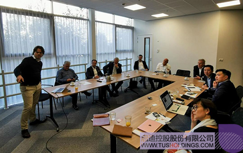 胡波與荷蘭韋斯特蘭市前市長Sjaak Van Der Tak,世界園藝中心董事長、荷蘭花卉集團創始人Jaap Van Duijn及荷蘭本地科技園開發團隊共同討論中荷科技園建設