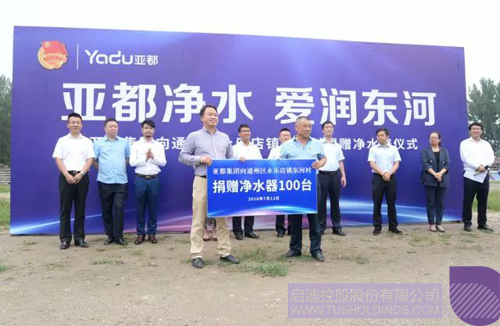 為落實精準幫扶戰略,推進健康扶貧工作深入開展,倡導綠色環保、關注飲水健康,7月12日,由通州區團委、啟迪控股以及啟迪控股旗下亞都科技集團聯合舉辦的通州區永樂店鎮東河村“亞都凈水 愛潤東河”安全飲水公益行幫扶活動啟動暨現場捐贈儀式在東河村舉行。